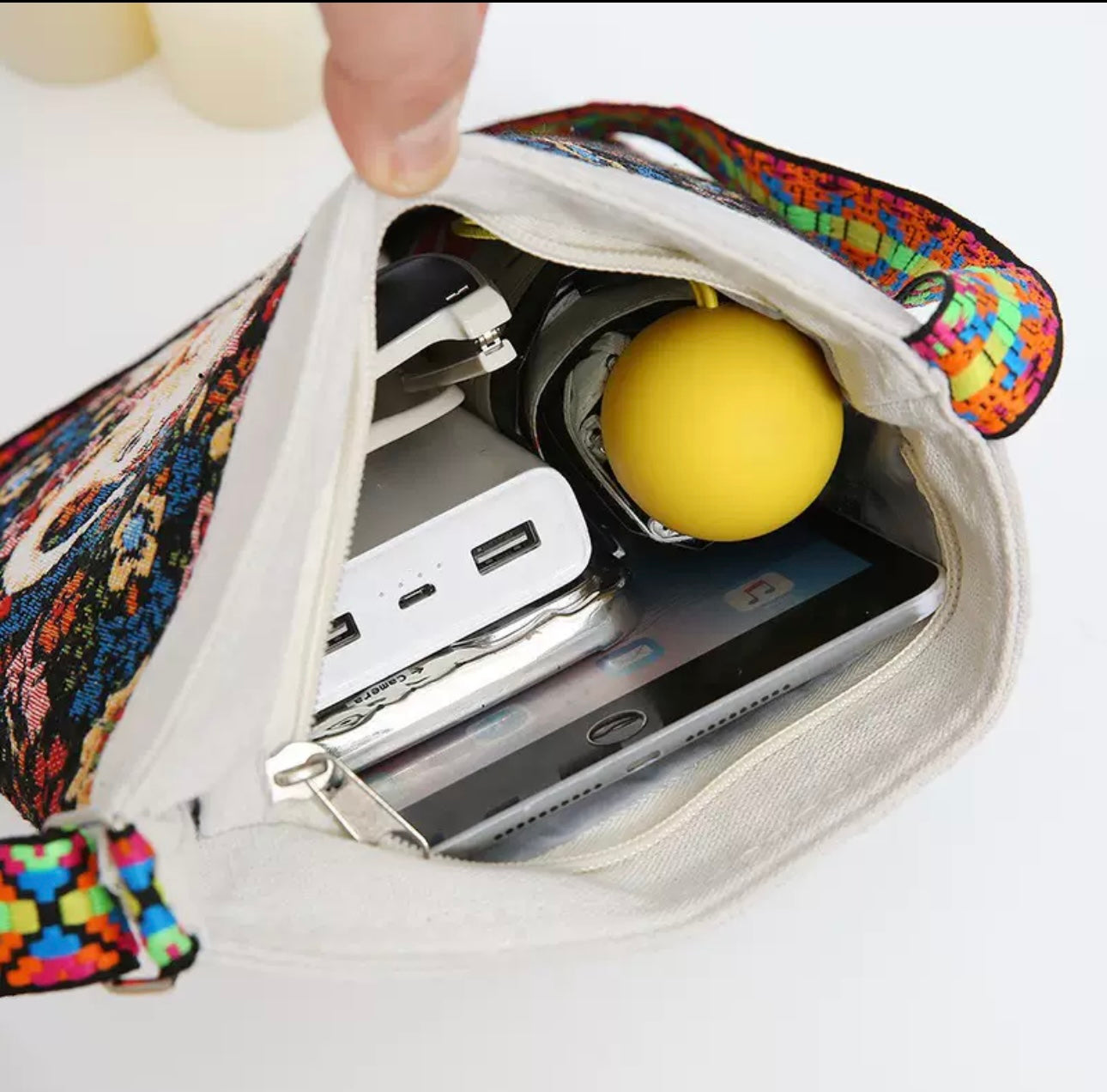 Boho Elephant Embroidered Crossbody Bag – Tablet & Everyday Essentials